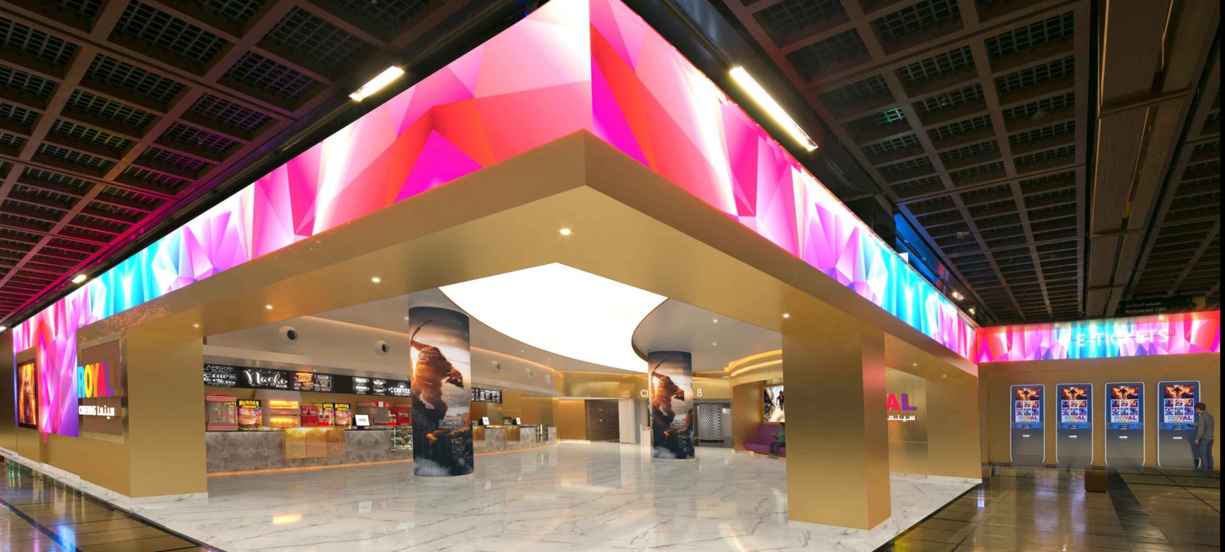 Mussafah is an industrial town to the southwest of Abu Dhabi, United Arab Emirates. It is one of the most important economic areas of the United Arab Emirates and has been designated a special economic zone, with numerous factories and port. Dalma Mall is a neighbouring mall in Musaffah, Abu Dhabi it is biggest shopping mall in the capital city of UAE. Moments away from Maqta Bridge and Abu Dhabi International Airport, this mall is a good shopping and entertainment destination, with stores offering the latest fashion brands and entertainment facilities for all ages. Royal Cinemas Dalma Mall was launched in June 2011, catering to the developing communities of ICAD, MBZ City, Khalifa City, Raha development. A total of fourteen screens with 2,000 seats making it one of the biggest Cineplex in Abu Dhabi out of which two “Royal Class” for VVIP viewings, one “KIDS Theatre”, one “Royal Plus”. There are five screens dedicated to 3D viewing and two screens are equipped with Laser projectors.